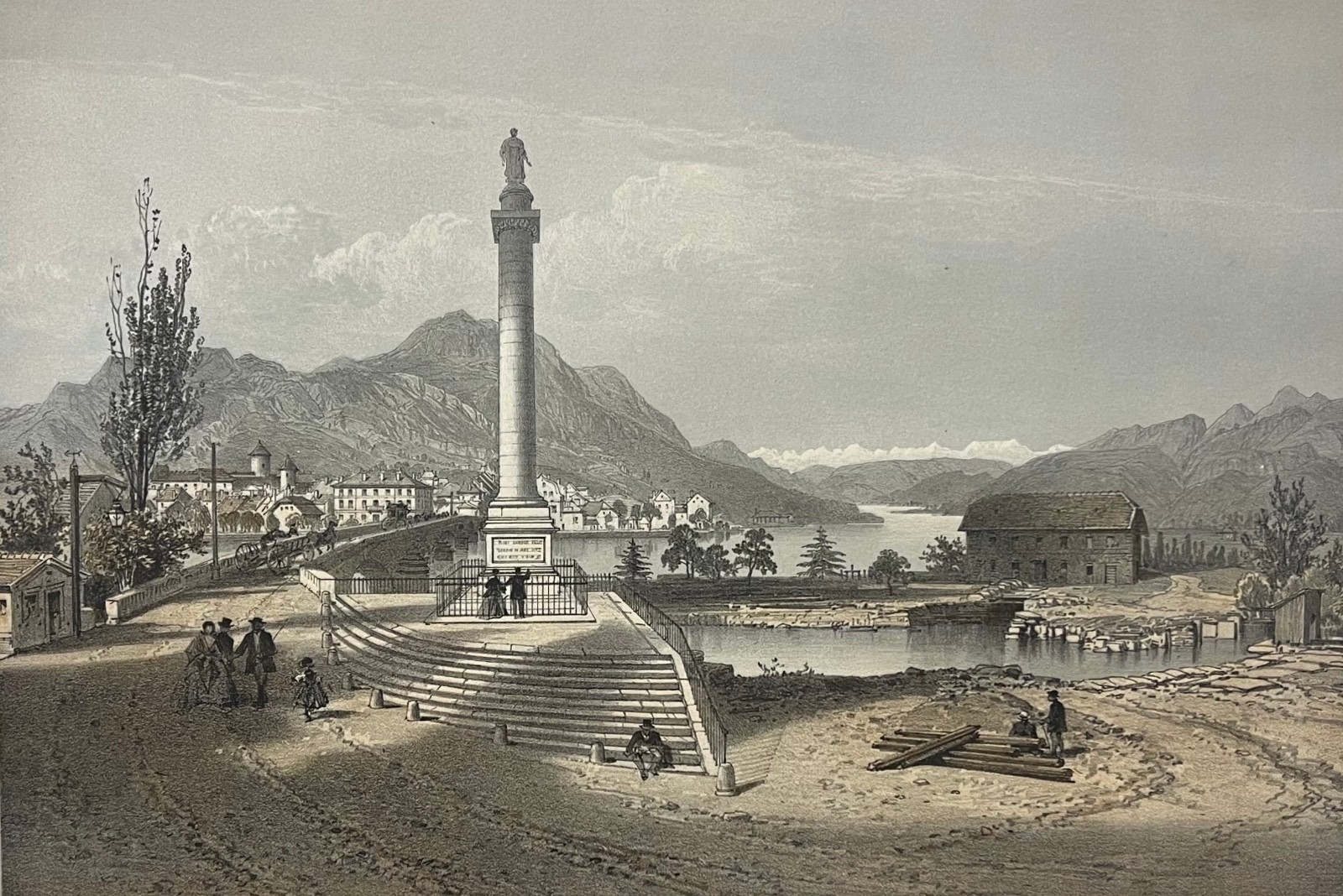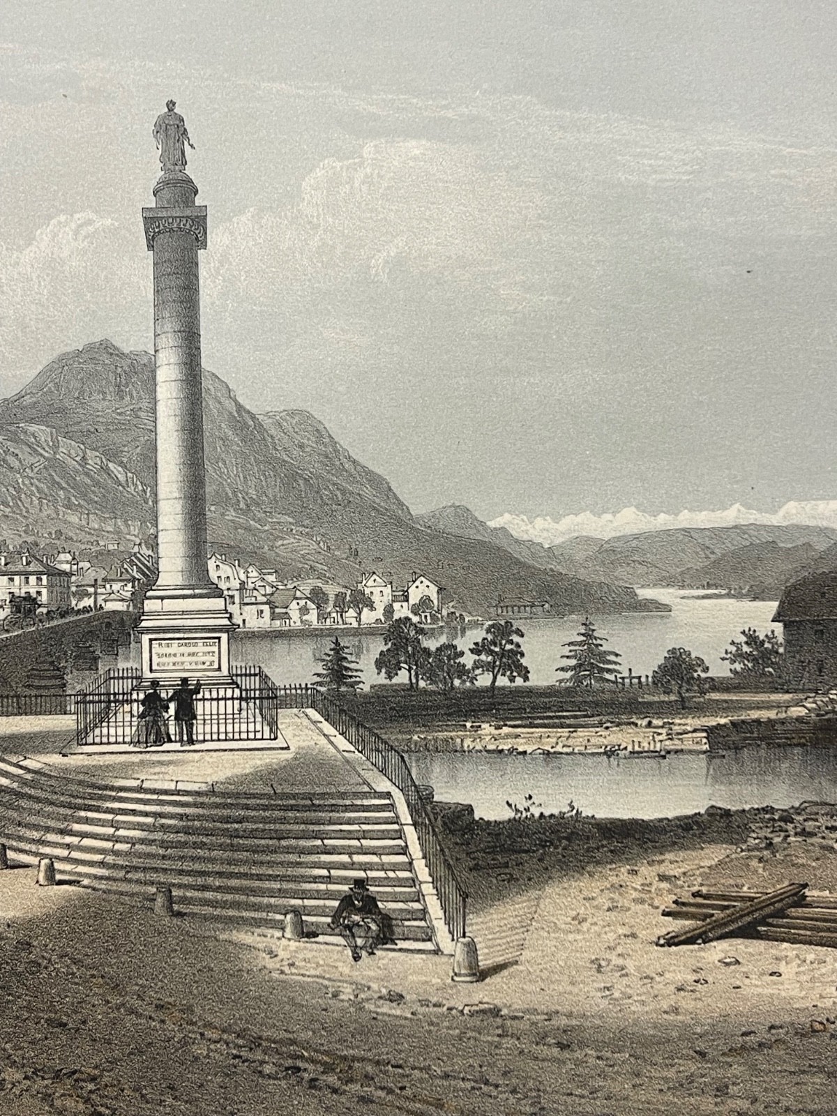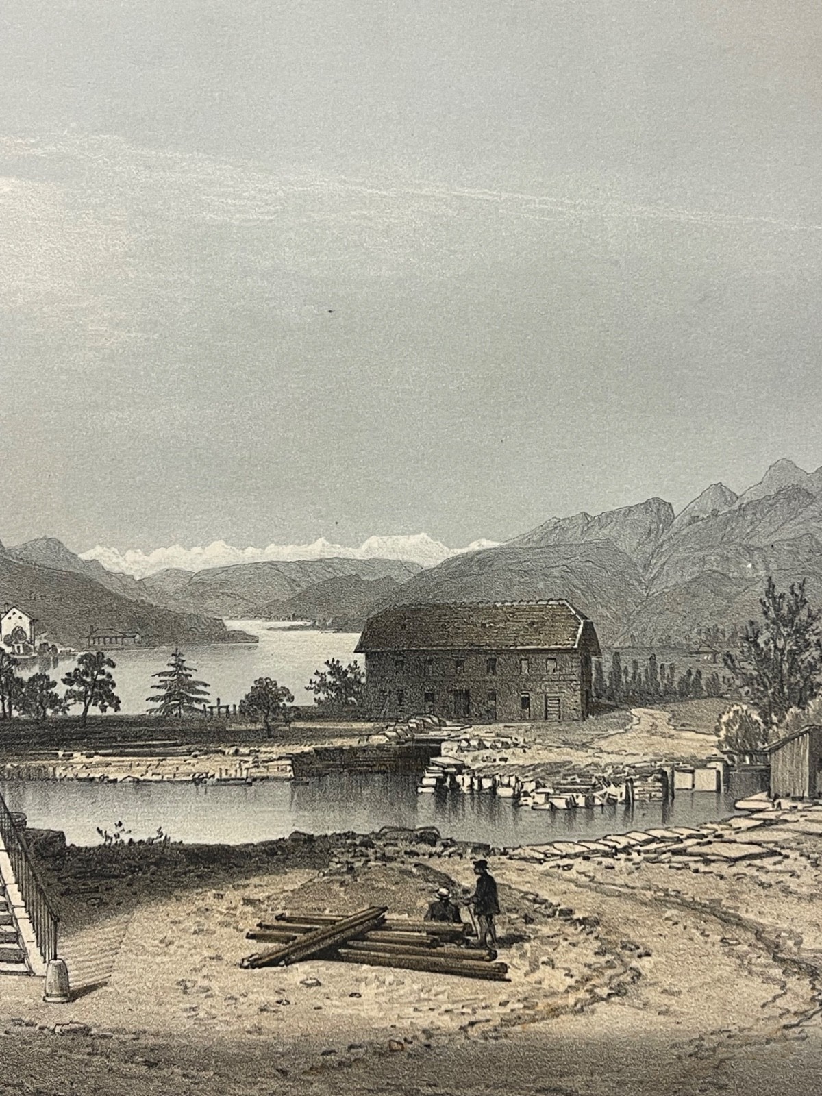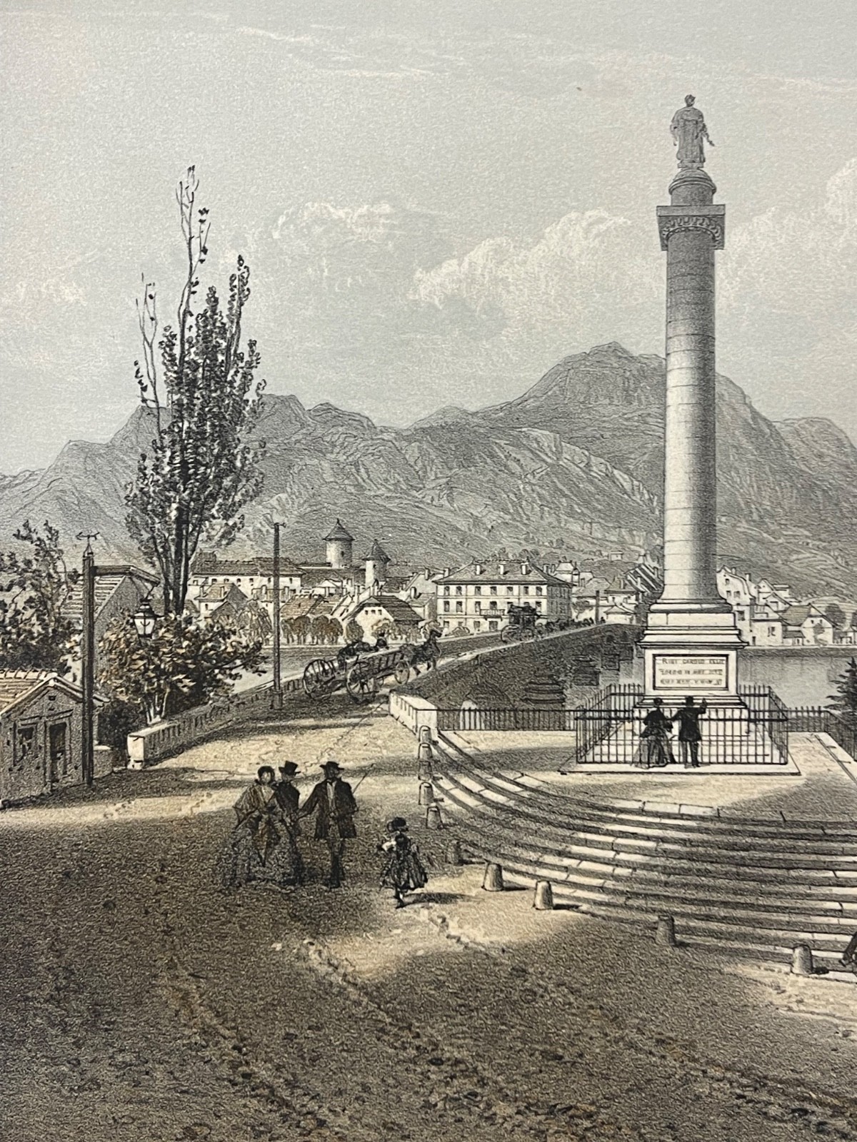 Je vous propose cette lithographie originale vers 1864 représentant Bonneville et Vallee de l’Arve en Haute-Savoie.