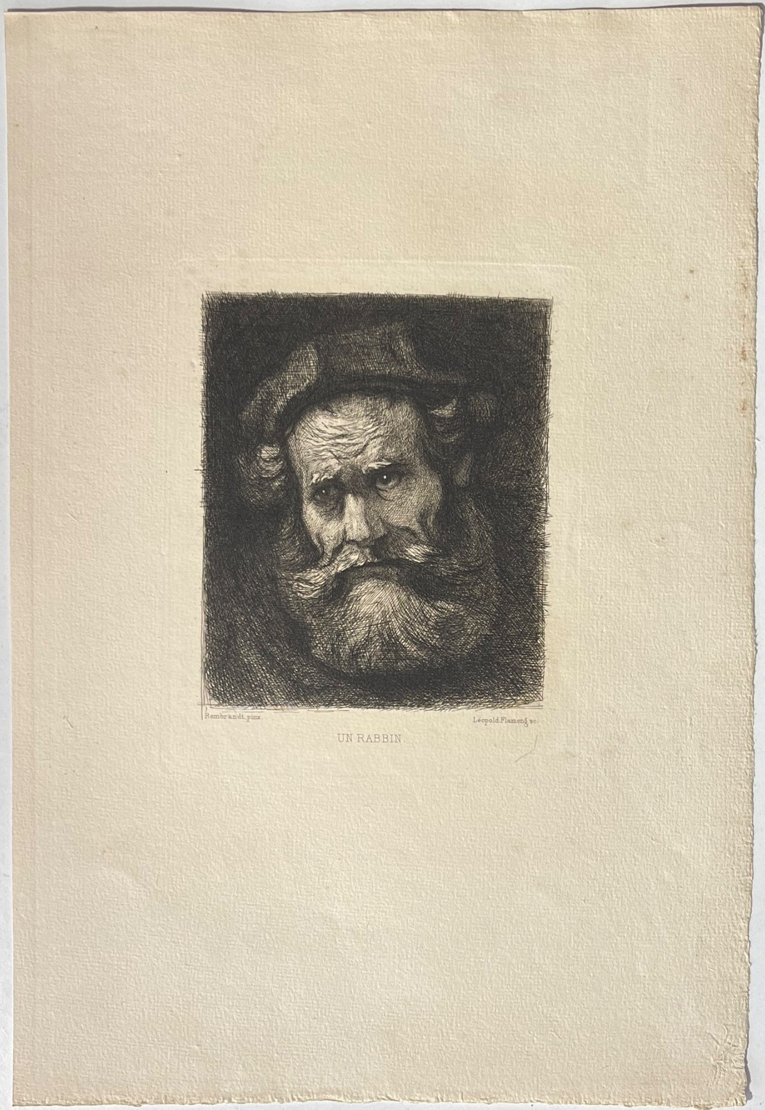 Gravure ancienne intitulée Un Rabbin, réalisée au XIXe siècle d’après Rembrandt et gravée par Léopold Flameng.