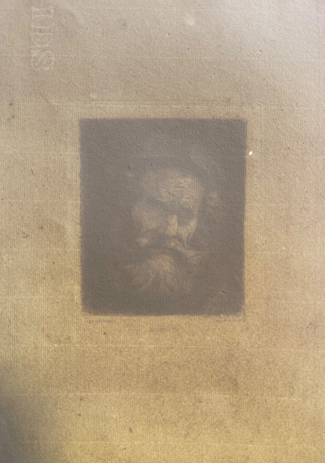 Ce portrait en buste, d’une grande intensité expressive, illustre parfaitement l’influence de Rembrandt : travail subtil des ombres, profondeur du regard et richesse des textures. La barbe et les traits du visage sont traités avec une grande finesse, typique de la gravure d’interprétation du XIXe siècle.