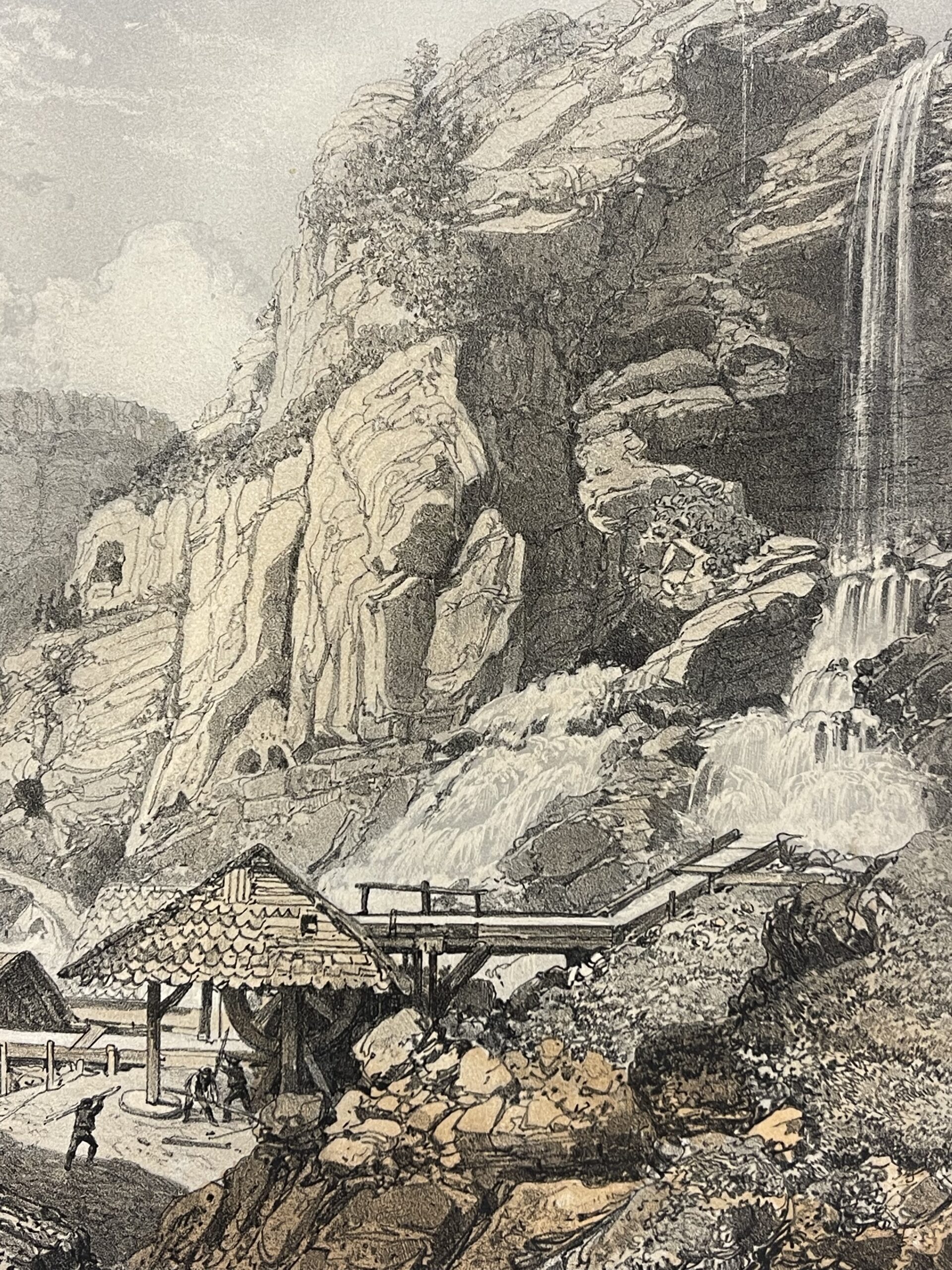 Pièce très décorative et d’une grande valeur historique, elle ravira les collectionneurs de paysages alpins, de cascades et d’iconographie régionale française.
