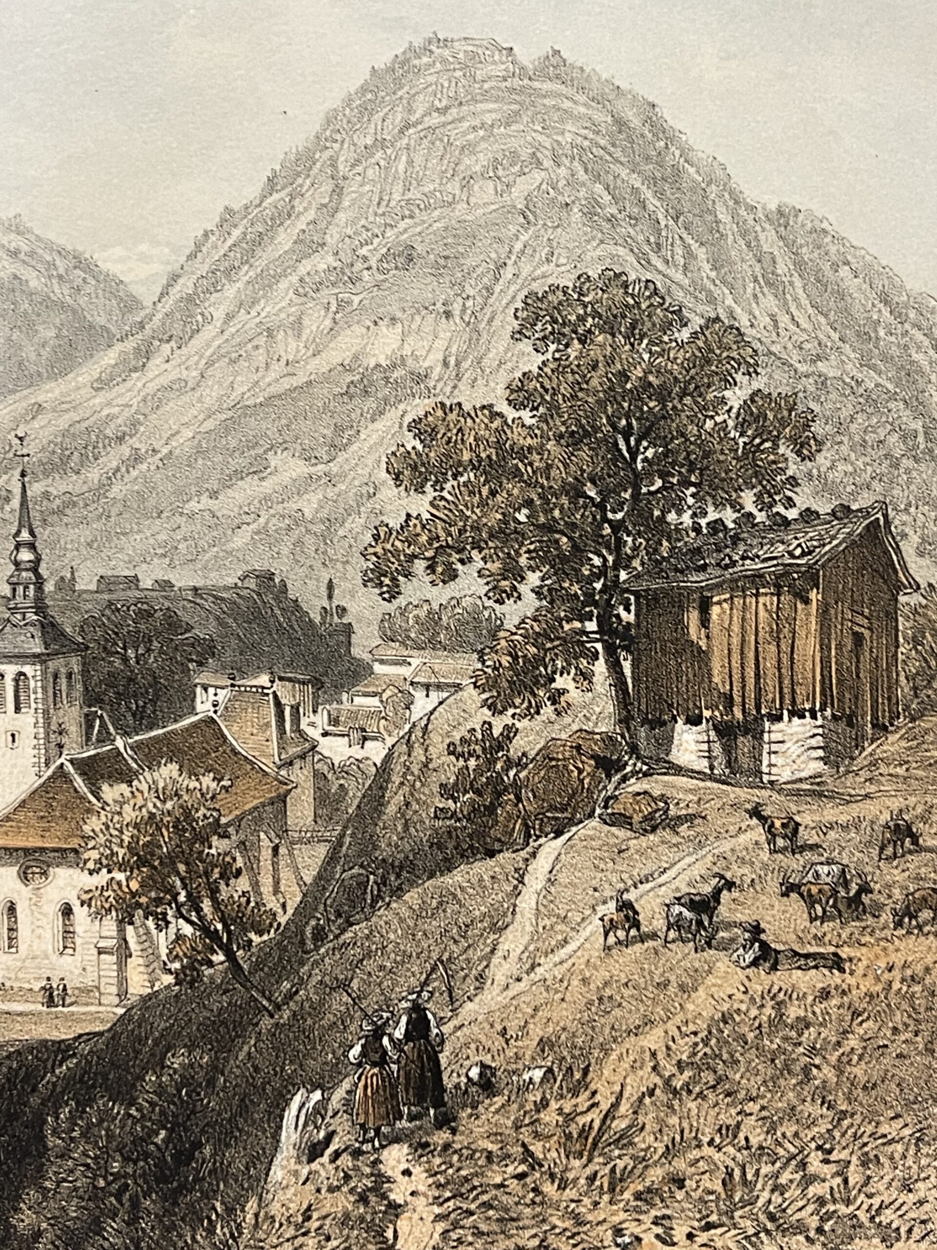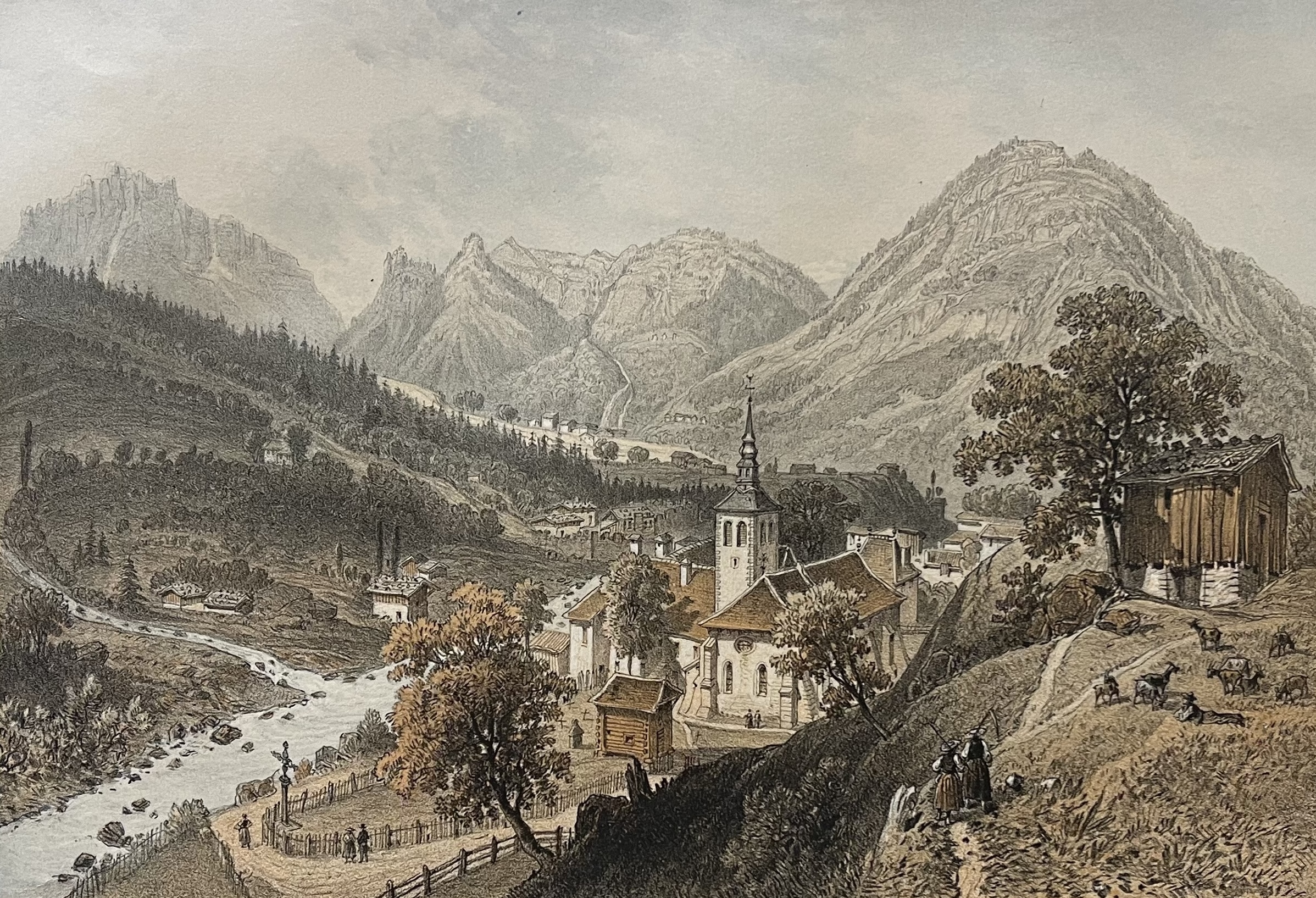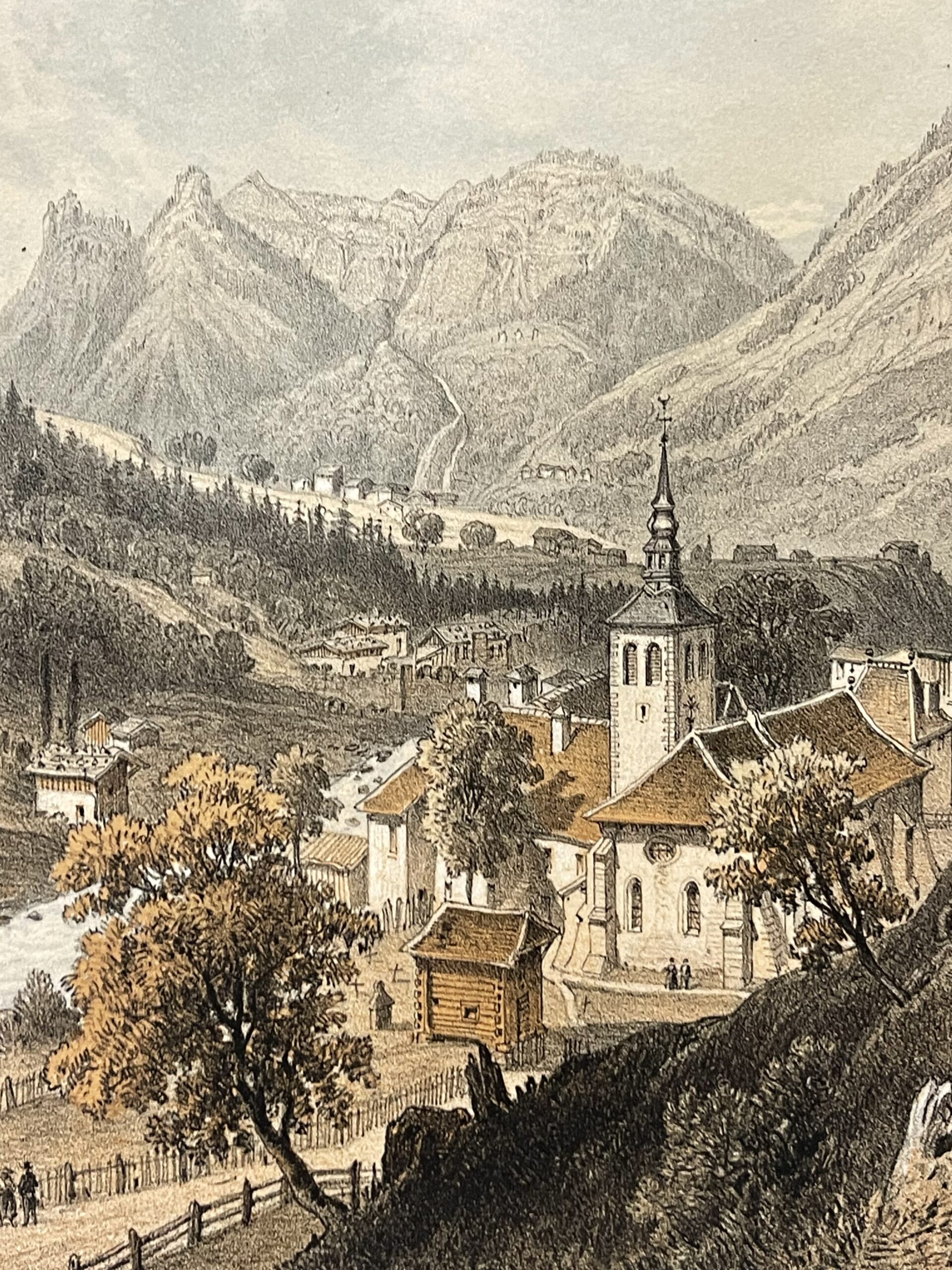 Une pièce décorative et historique, idéale pour amateurs de paysages alpins, de patrimoine savoyard ou de gravures anciennes.